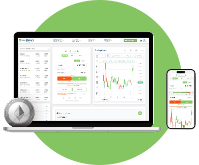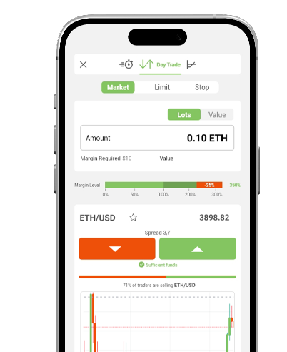 You can trade Ethereum with easyMarkets, without the need to sign up for a cryptocurrency exchange or a crypto wallet and with a starting deposit as low as $100. You can use either a day trade or a pending order (which opens a day trade at a predefined level) to trade both upwards and downwards Ethereum price movements.